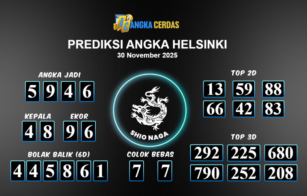 Prediksi Togel HELSINKI untuk hari ini Minggu 30 November 2025, adalah salah