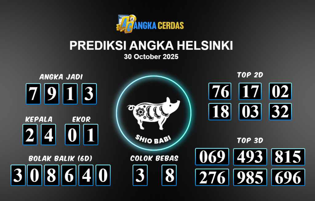 Prediksi Togel HELSINKI untuk hari ini Kamis 30 Oktober 2025, adalah salah
