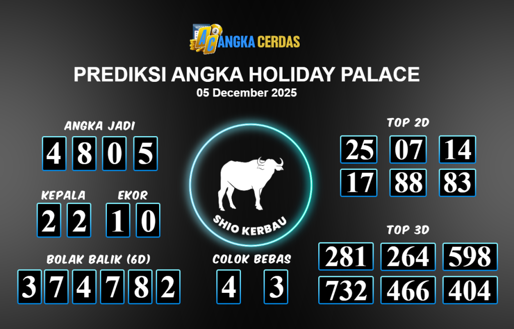 Prediksi Togel HOLIDAY PALACE untuk hari ini Jumat 05 Desember November 2025, adalah salah
