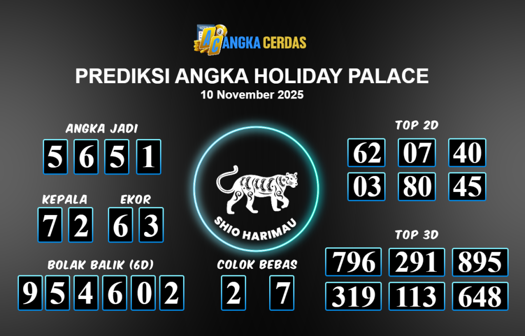 Prediksi Togel HOLIDAY PALACE untuk hari ini Senin 10 November 2025, adalah salah