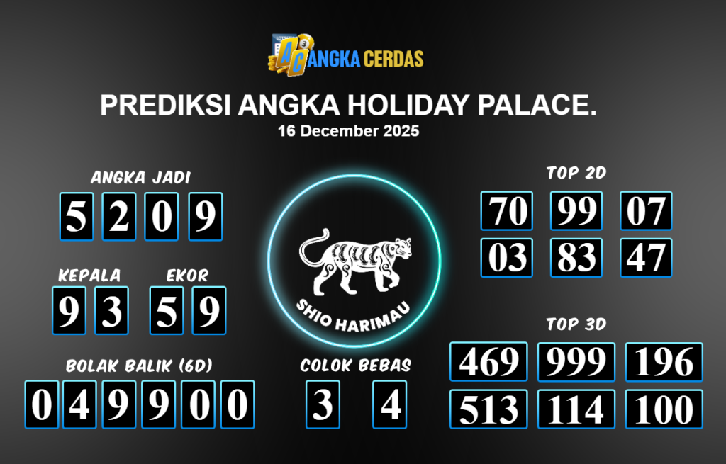 Prediksi Togel HOLIDAY PALACE untuk hari ini Selasa 16 Desember November 2025, adalah salah