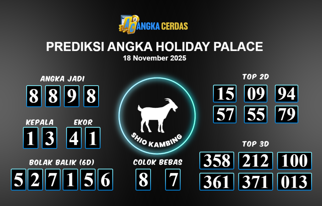 Prediksi Togel HOLIDAY PALACE untuk hari ini Selasa 18 November 2025, adalah salah