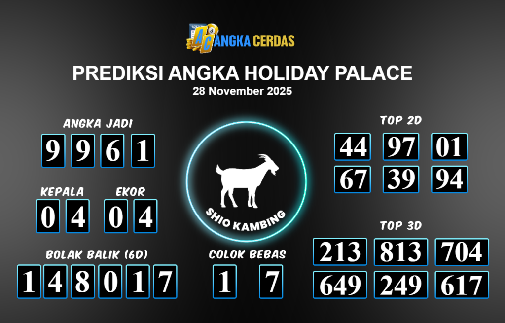 Prediksi Togel HOLIDAY PALACE untuk hari ini Jumat 28 November 2025, adalah salah
