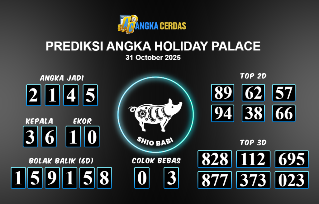 Prediksi Togel HOLIDAY PALACE untuk hari ini Jumat 31 Oktober 2025, adalah salah
