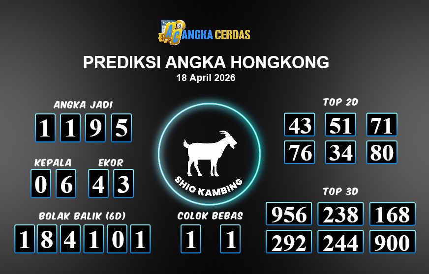 Prediksi Togel HONGKONG untuk hari ini Sabtu, 18 April 2026, adalah salahsatu jenis togel yang memiliki banyak penggemar.Ini terutama ditujukanbagi Anda yang menyukai 4d/3d/2d. Prediksi Angka Cerdas yang kamisediakan,bisa