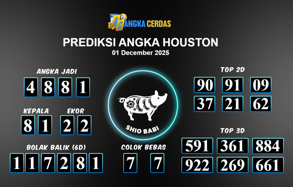 Prediksi Togel HOUSTON untuk hari ini Senin 1 Desember November 2025, adalah salah