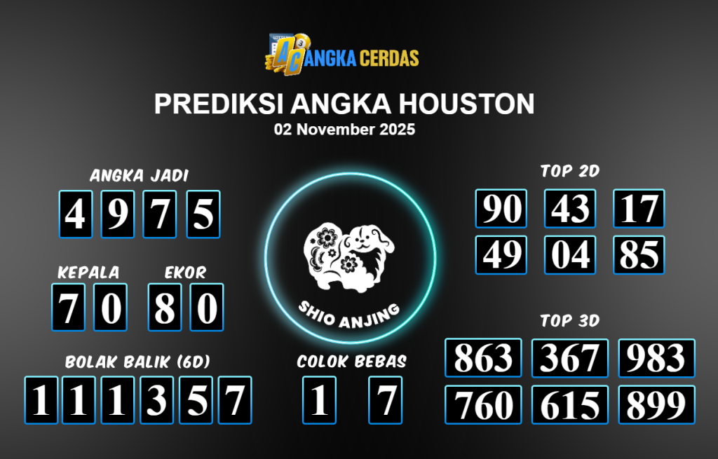 Prediksi Togel HOUSTON untuk hari ini Minggu 02 November 2025, adalah salah