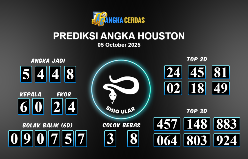 Prediksi Togel HOUSTON untuk hari ini Minggu 05 Oktober 2025, adalah salah