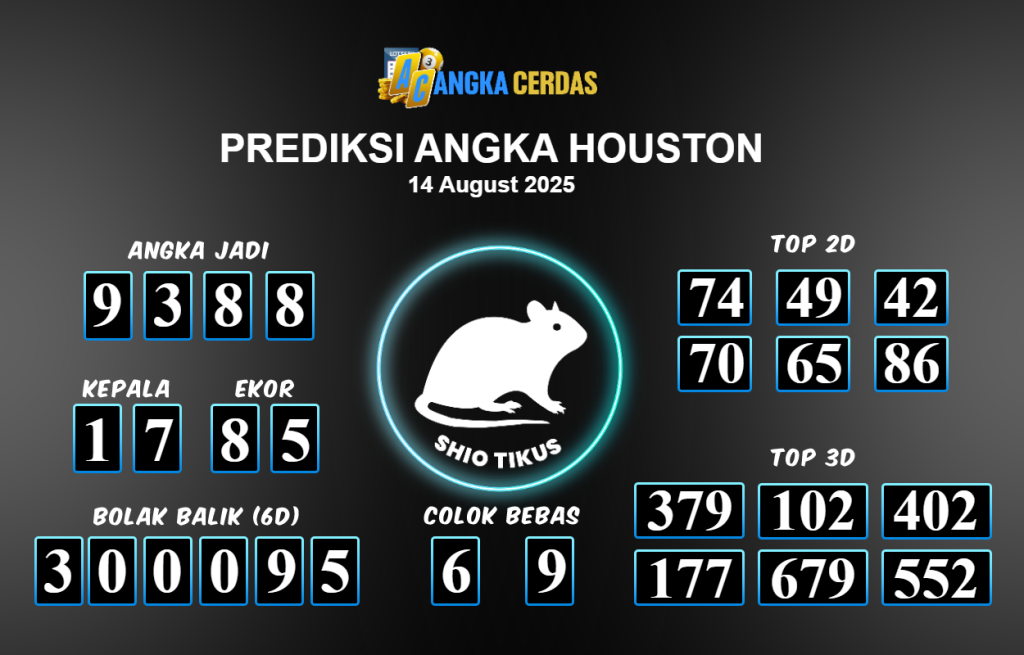Prediksi Togel HOUSTON untuk hari ini Kamis 14 Agustus 2025, adalah salah
