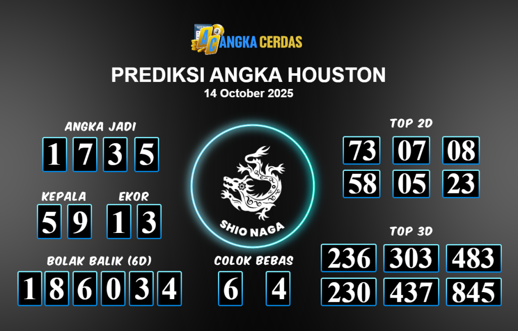 Prediksi Togel HOUSTON untuk hari ini Selasa 14 Oktober 2025, adalah salah