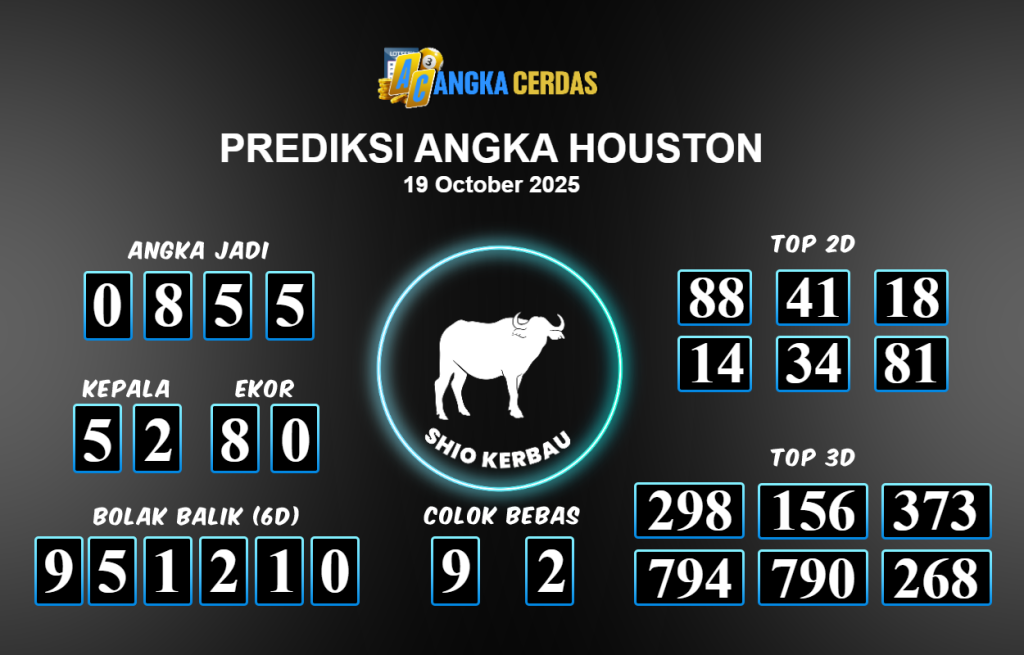 Prediksi Togel HOUSTON untuk hari ini Minggu 19 Oktober 2025, adalah salah