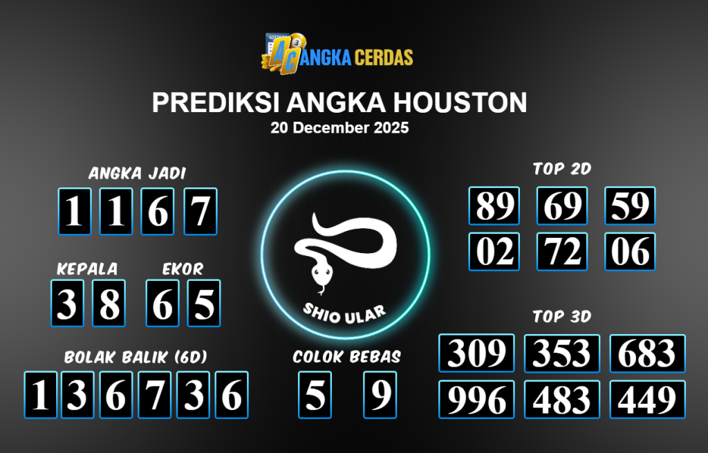 Prediksi Togel HOUSTON untuk hari ini Sabtu 20 Desember November 2025, adalah salah