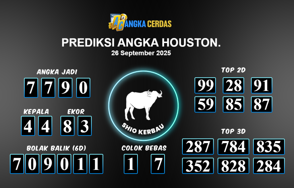 Prediksi Togel HOUSTON untuk hari ini Jumat 26 September 2025, adalah salah