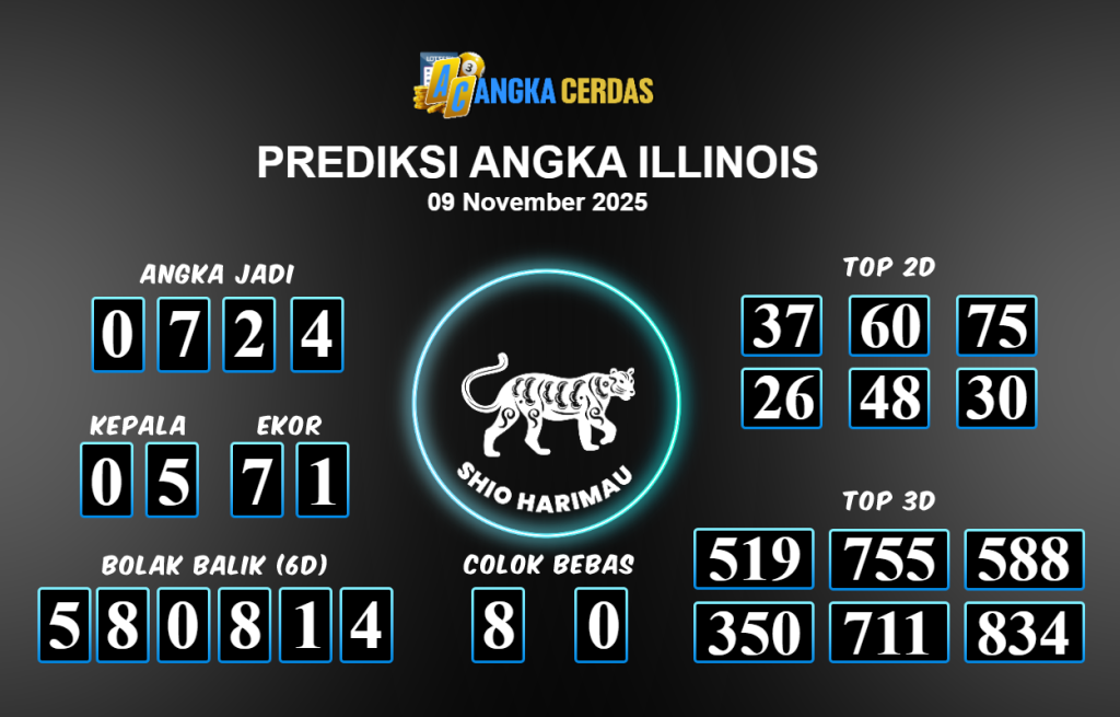 Prediksi Togel ILLINOIS untuk hari ini Minggu 09 November 2025, adalah salah