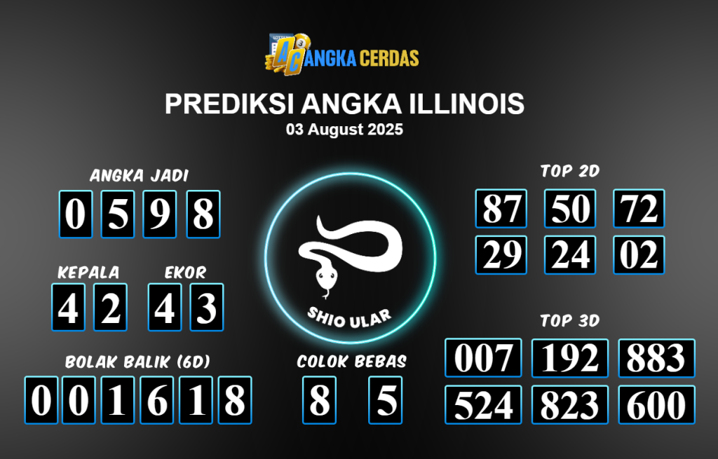 Prediksi Togel ILLINOIS untuk hari ini Minggu, 3 Agustus 2025, adalah salah