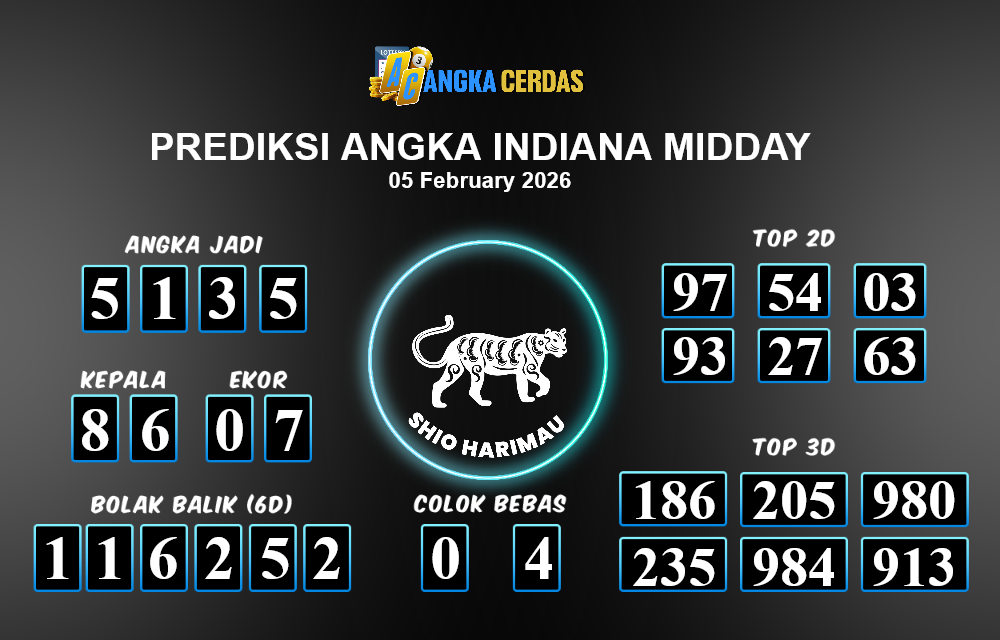Prediksi Togel INDIANA MIDDAY untuk hari ini Kamis, 05 Februari 2026, adalah salah