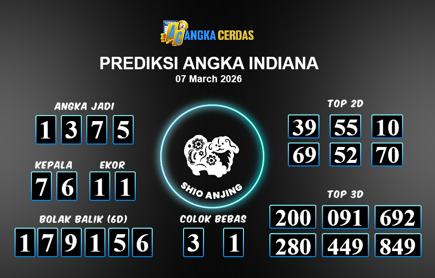 Prediksi Togel INDIANA untuk hari ini Sabtu, 07 Maret 2026, adalah salah