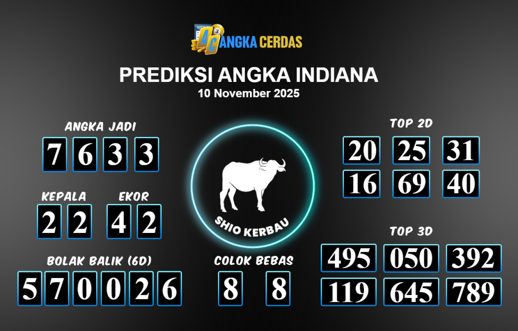 Angka Cerdas : Bocoran Prediksi Togel INDIANA Tanggal 10 November 2025
