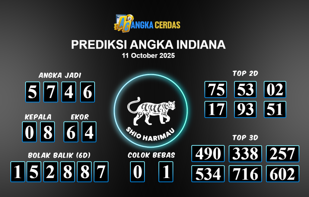 Prediksi Togel INDIANA untuk hari ini Sabtu 11 Oktober 2025, adalah salah