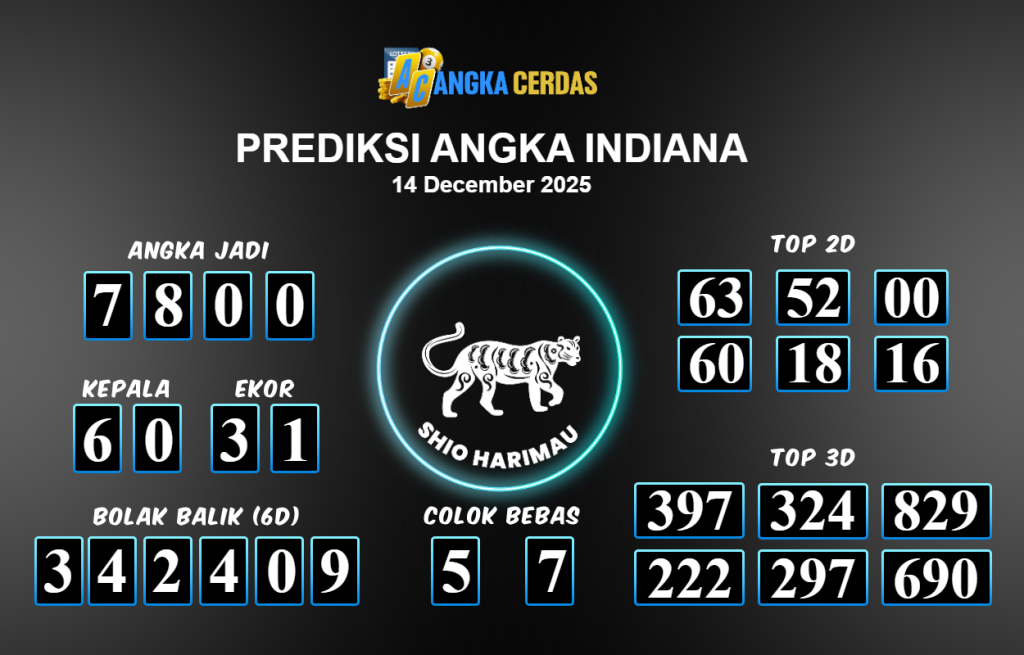 Prediksi Togel INDIANA untuk hari ini Minggu 14 Desember November 2025, adalah salah
