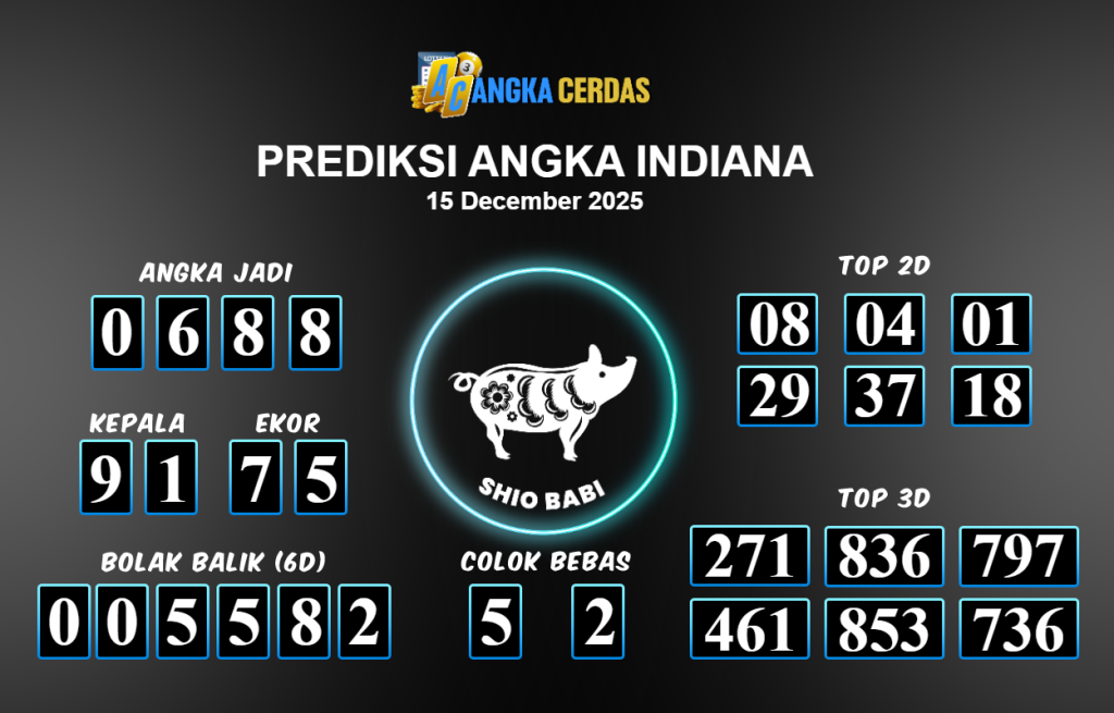 Prediksi Togel INDIANA untuk hari ini Senin 15 Desember November 2025, adalah salah