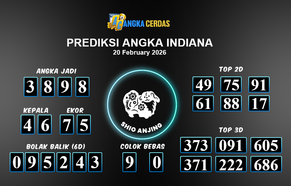 Prediksi Togel INDIANA untuk hari ini Jumat, 20 Februari 2026, adalah salah