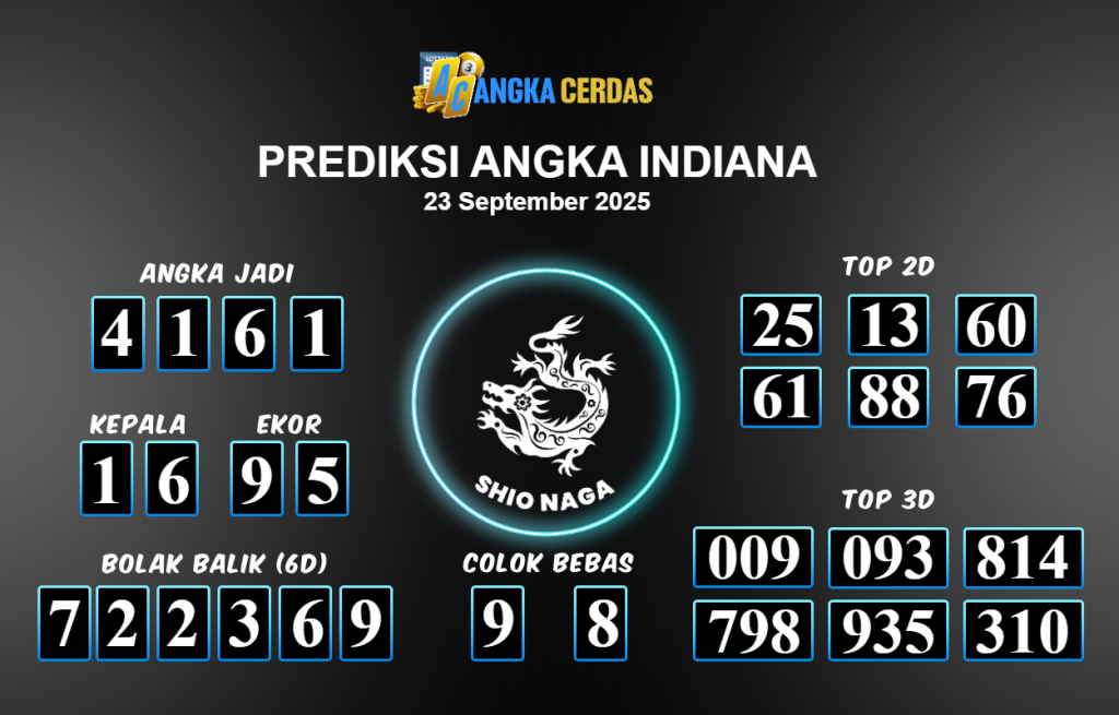 Prediksi Togel INDIANA untuk hari ini Selasa 23 September 2025, adalah salah