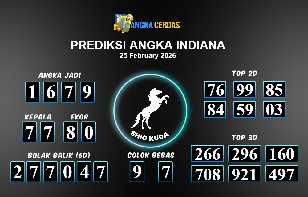 Prediksi Togel INDIANA untuk hari ini Rabu, 25 Februari 2026, adalah salah