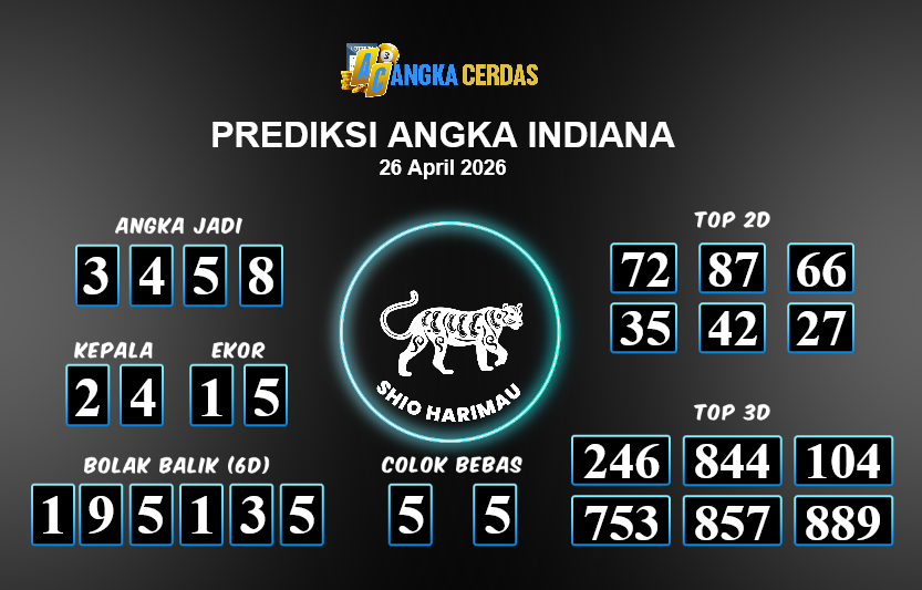 Prediksi Togel INDIANA untuk hari ini Minggu, 26 April 2026, adalah salahsatu jenis togel yang memiliki banyak penggemar.Ini terutama ditujukanbagi Anda yang menyukai 4d/3d/2d. Prediksi Angka Cerdas yang kamisediakan,bisa