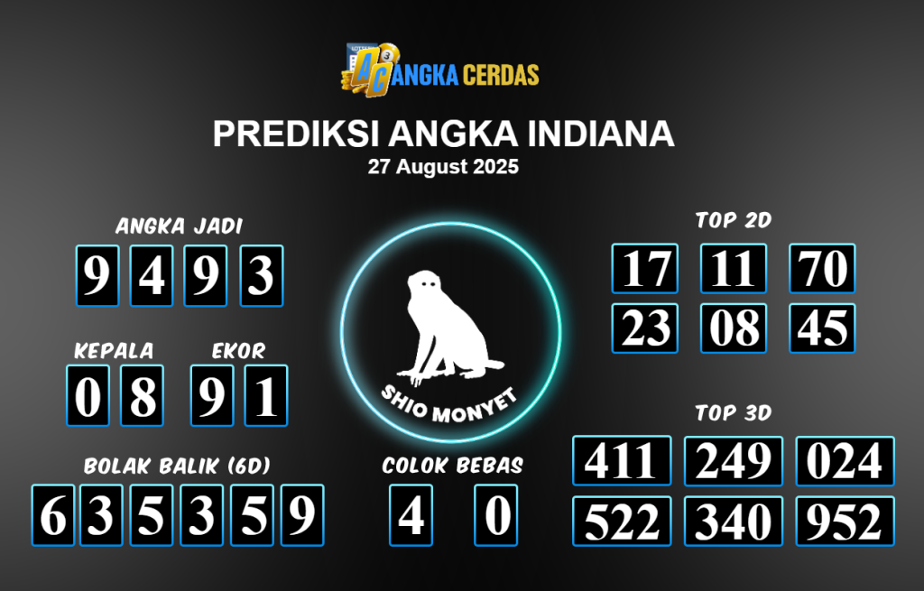 Prediksi Togel INDIANA untuk hari ini Rabu 27 Agustus 2025, adalah salah