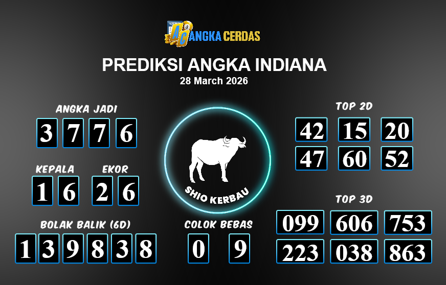 Prediksi Togel INDIANA untuk hari ini Sabtu, 28 Maret 2026, adalah salah
