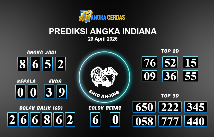 Prediksi Togel INDIANA untuk hari ini Rabu, 29 April 2026, adalah salahsatu jenis togel yang memiliki banyak penggemar.Ini terutama ditujukanbagi Anda yang menyukai 4d/3d/2d. Prediksi Angka Cerdas yang kamisediakan,bisa