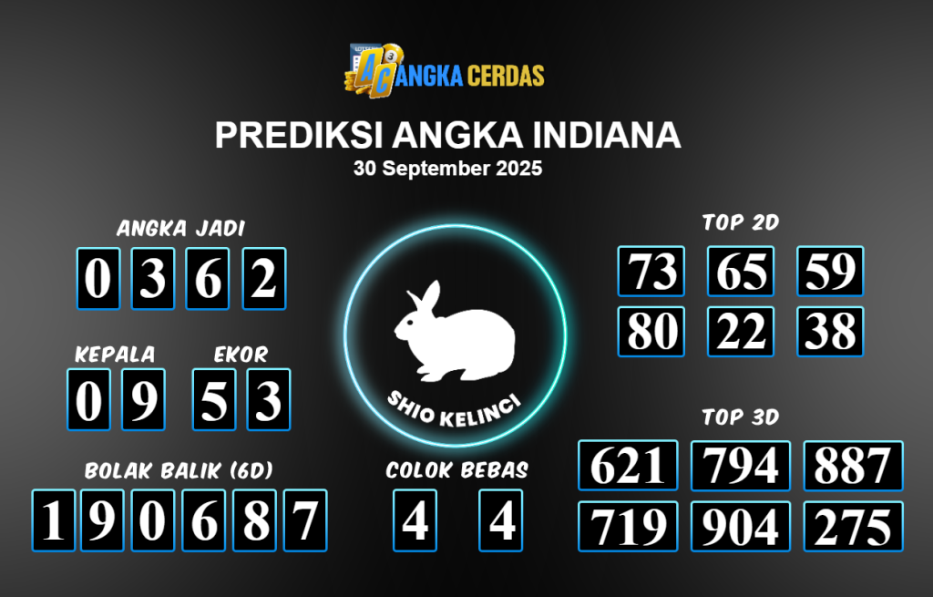 Prediksi Togel INDIANA untuk hari ini Selasa 30 September 2025, adalah salah