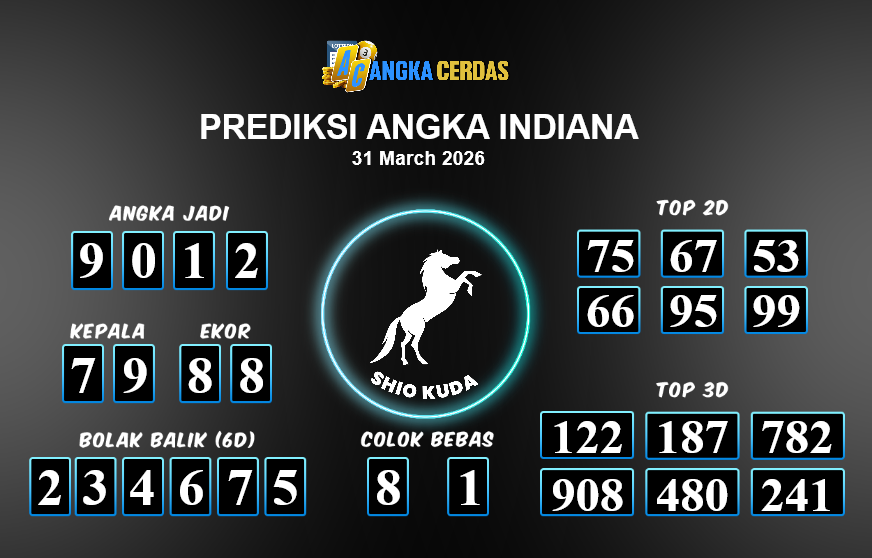 Prediksi Togel INDIANA untuk hari ini Selasa, 31 Maret 2026, adalah salah