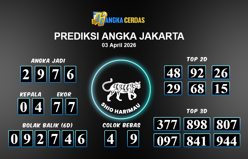 Prediksi Togel JAKARTA untuk hari ini Jumat, 03 April 2026, adalah salah