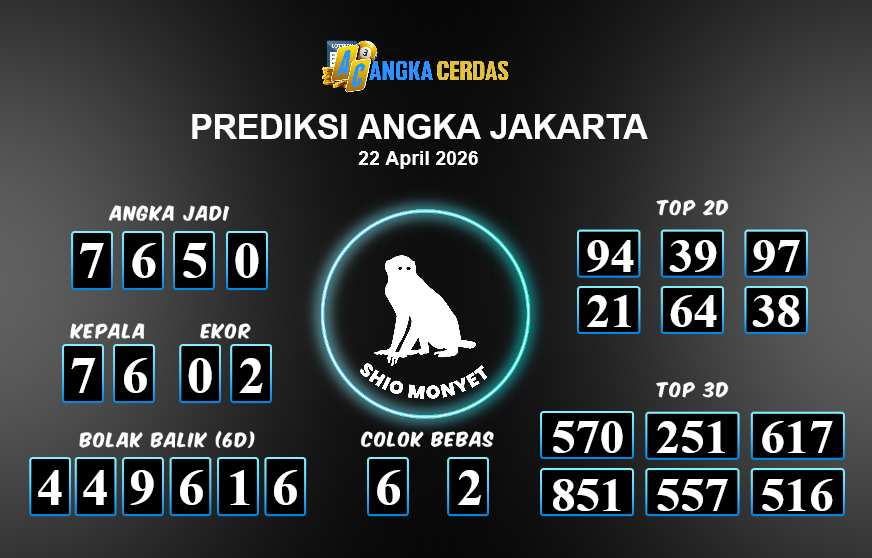 Prediksi Togel JAKARTA untuk hari ini Rabu, 22 April 2026, adalah salahsatu jenis togel yang memiliki banyak penggemar.Ini terutama ditujukanbagi Anda yang menyukai 4d/3d/2d. Prediksi Angka Cerdas yang kamisediakan,bisa