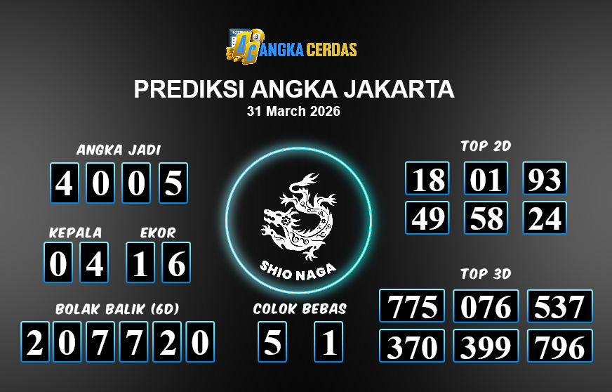 Prediksi Togel JAKARTA untuk hari ini Selasa, 31 Maret 2026, adalah salah