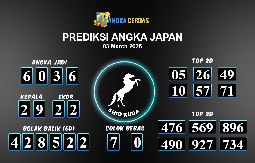 Prediksi Togel JAPAN untuk hari ini Selasa, 03 Maret 2026, adalah salah
