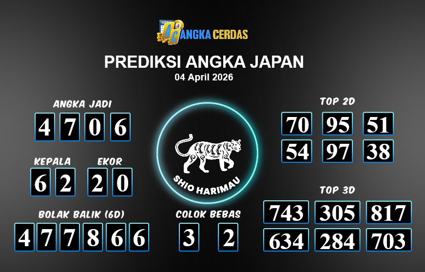 Prediksi Togel JAPAN untuk hari ini Sabtu, 04 April 2026, adalah salah