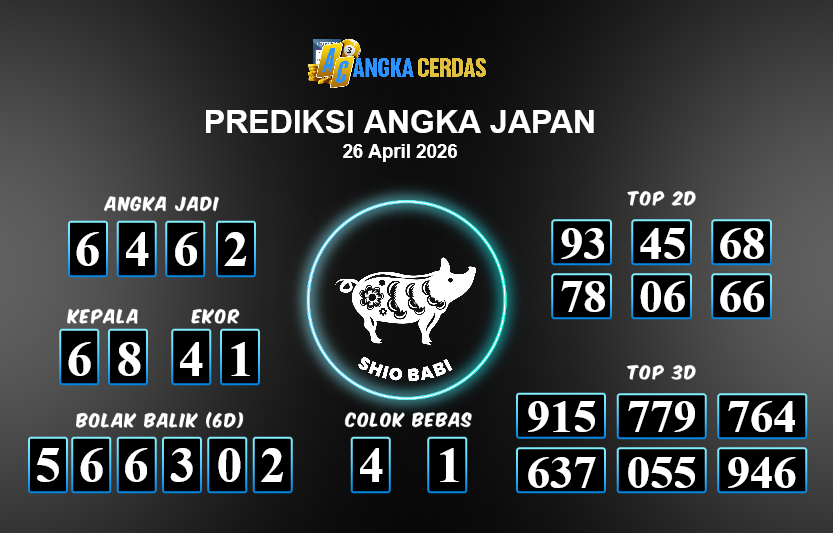 Prediksi Togel JAPAN untuk hari ini Minggu, 26 April 2026, adalah salahsatu jenis togel yang memiliki banyak penggemar.Ini terutama ditujukanbagi Anda yang menyukai 4d/3d/2d. Prediksi Angka Cerdas yang kamisediakan,bisa