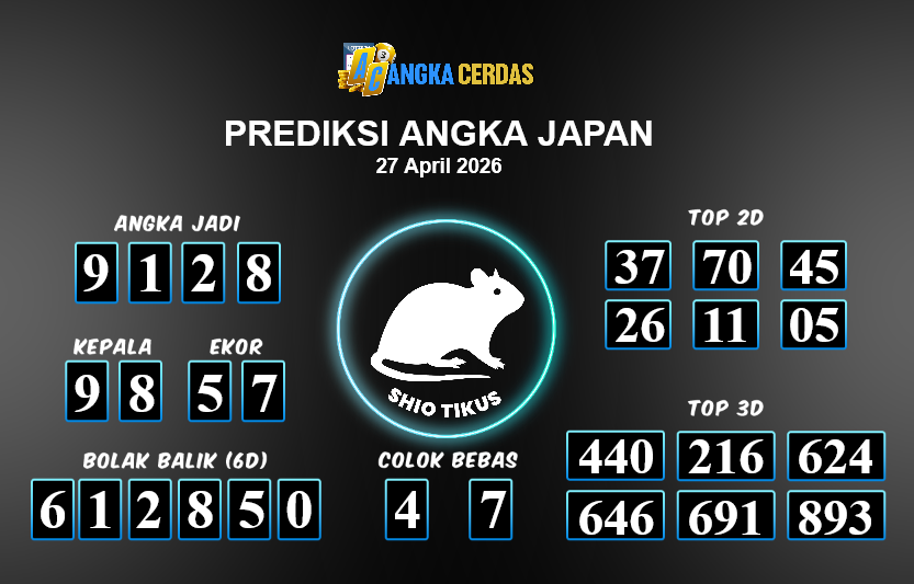Prediksi Togel JAPAN untuk hari ini Senin, 27 April 2026, adalah salahsatu jenis togel yang memiliki banyak penggemar.Ini terutama ditujukanbagi Anda yang menyukai 4d/3d/2d. Prediksi Angka Cerdas yang kamisediakan,bisa
