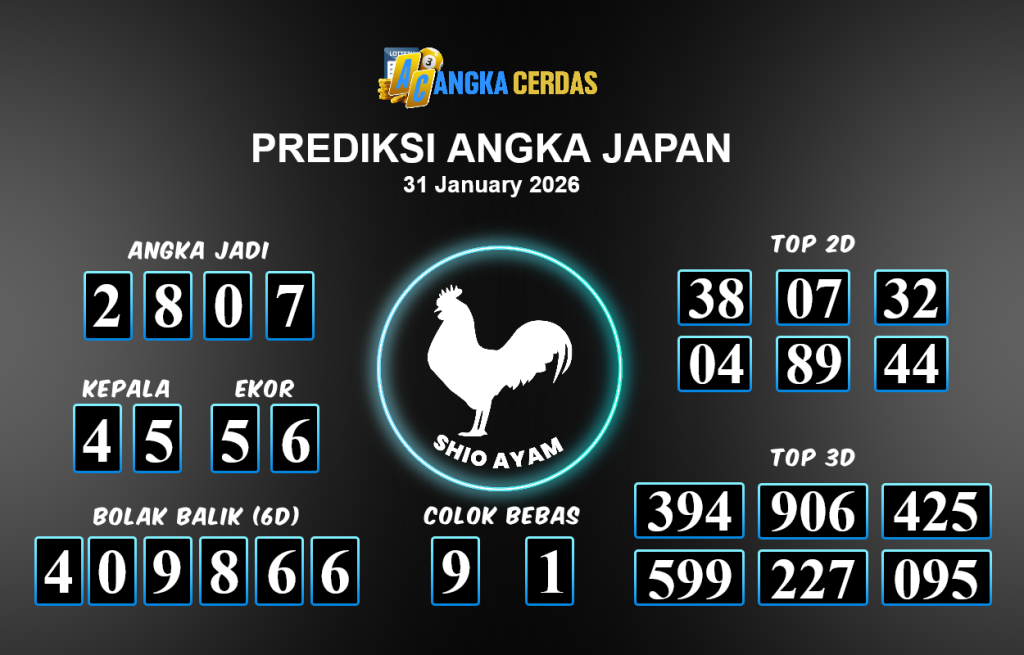 Prediksi Togel JAPAN untuk hari ini Sabtu 31 Januari 2026,adalah salah