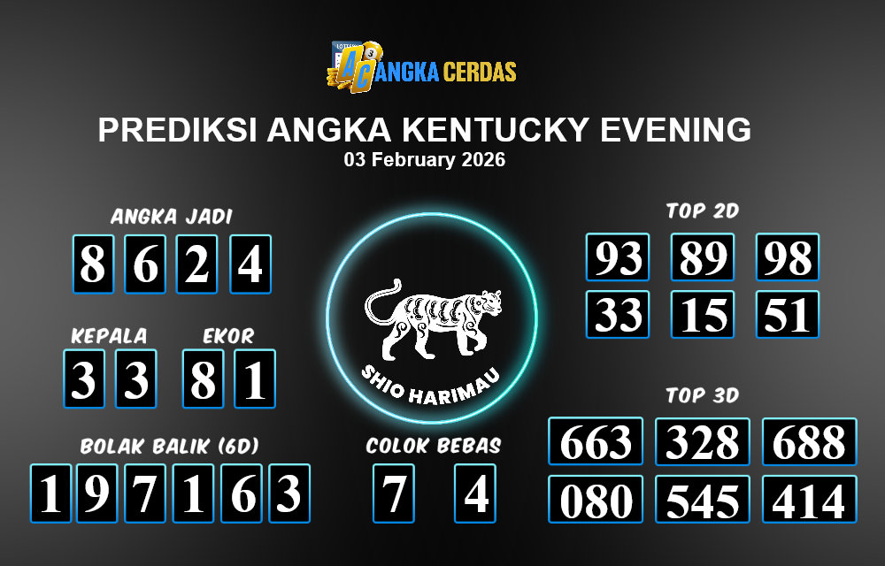 Prediksi Togel KENTUCKY EVENING hari ini Selasa 03 Februari 2026, adalah salah