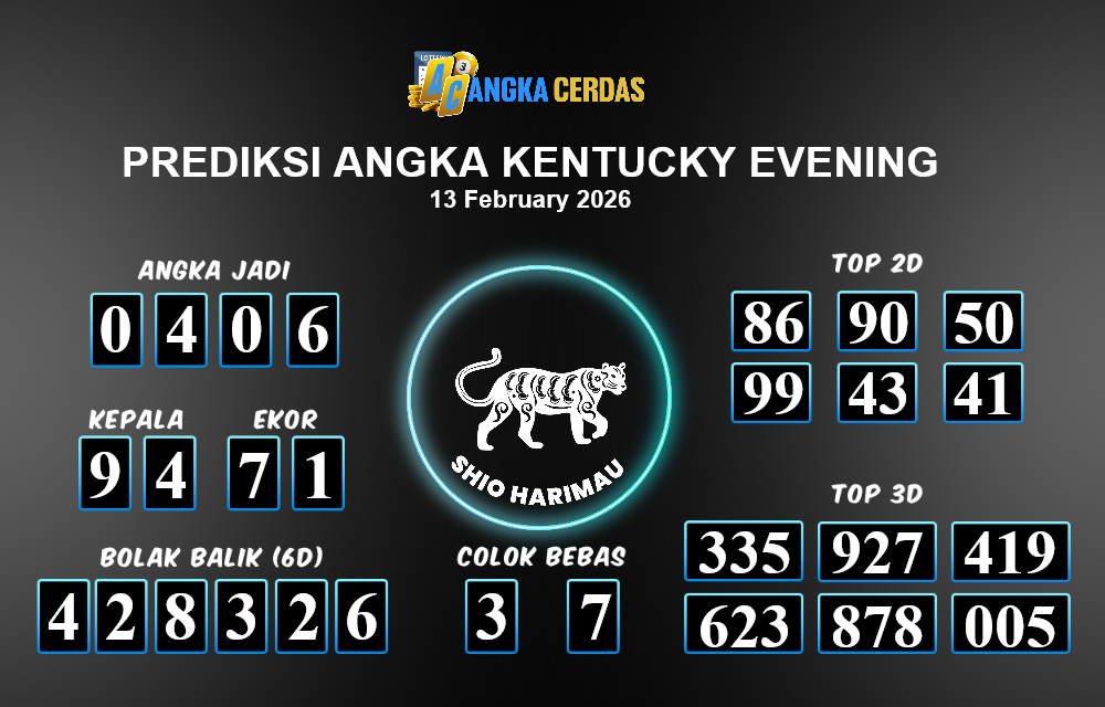 Prediksi Togel KENTUCKY EVENING untuk hari ini Jumat, 13 Februari 2026, adalah salah