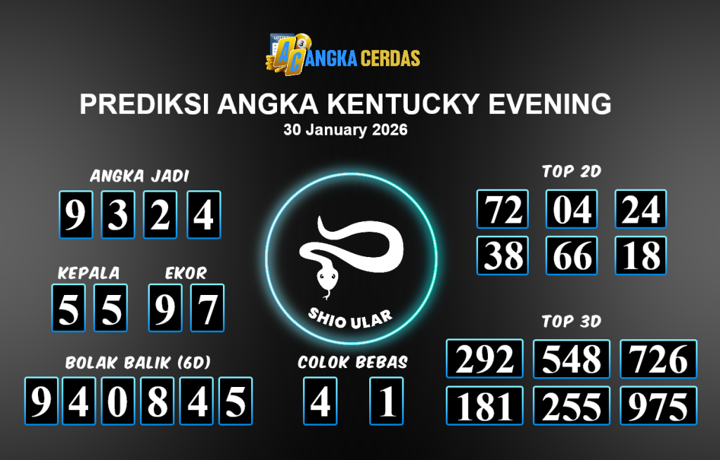 Angka Cerdas : Bocoran Prediksi Togel KENTUCKY EVENING Tanggal 30 JANUARI 2026