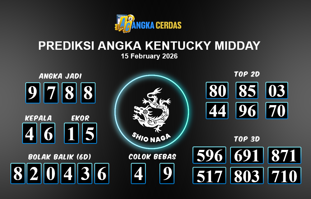 Prediksi Togel KENTUCKY MIDDAY untuk hari ini Minggu, 15 Februari 2026, adalah salah