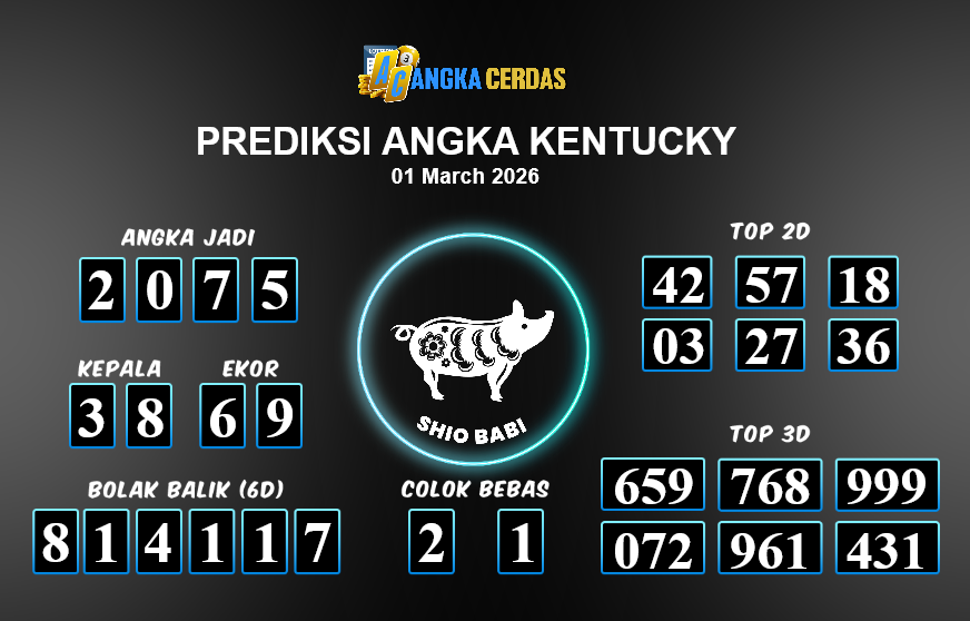 Prediksi Togel KENTUCKY untuk hari ini Minggu, 01 Maret 2026, adalah salah