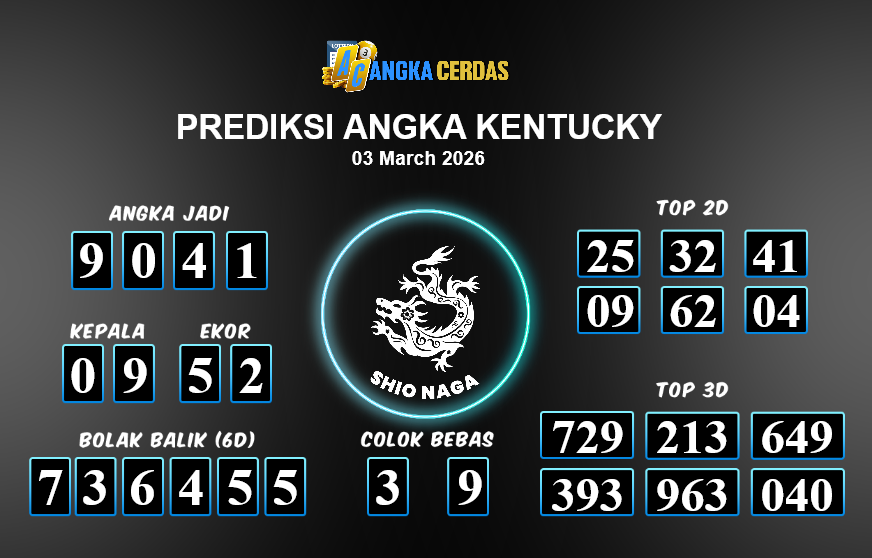 Prediksi Togel KENTUCKY untuk hari ini Selasa, 03 Maret 2026, adalah salah