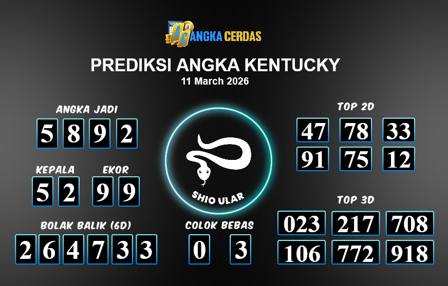 Prediksi Togel KENTUCKY untuk hari ini Rabu, 11 Maret 2026, adalah salah