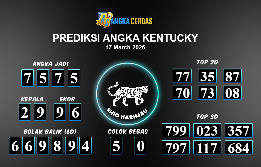 Prediksi Togel KENTUCKY untuk hari ini Selasa, 17 Maret 2026, adalah salah